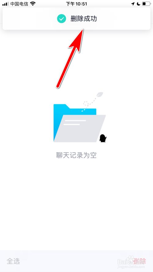 上方弹出删除当作功的提醒,即可清理聊天记实。