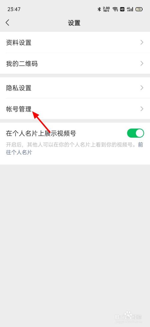 在设置界面,点击帐号办理。