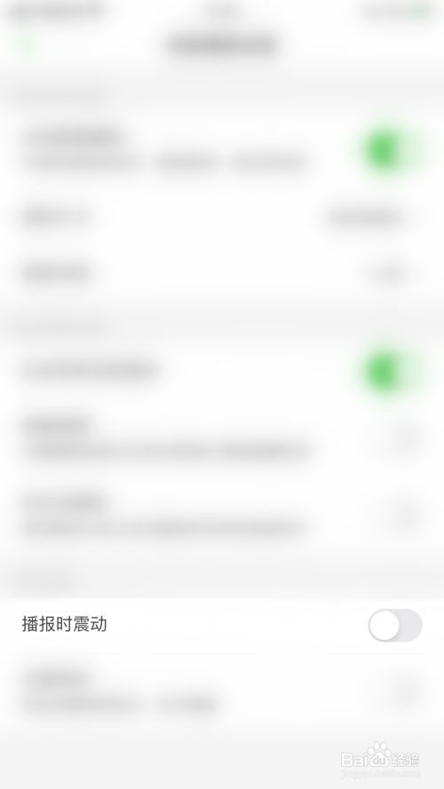 语音播报设置界面点击“播报时震动”后面的圆点