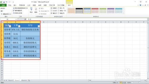 第二步:选择表格中需要美化的数据,如下图。
