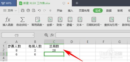新建或清空后,输入数据,例如来求已知参赛人数和每局人数,求总局数。