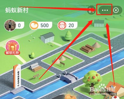 进入蚂蚁新村后点击右上角三点进入设置功能。