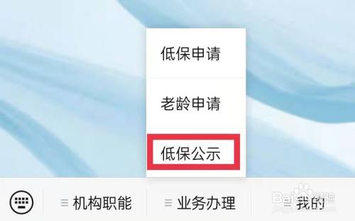 在弹框点击低保公示,在此查询即可。