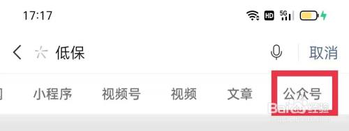 在微信上方点击搜刮,输入低保进行搜刮。