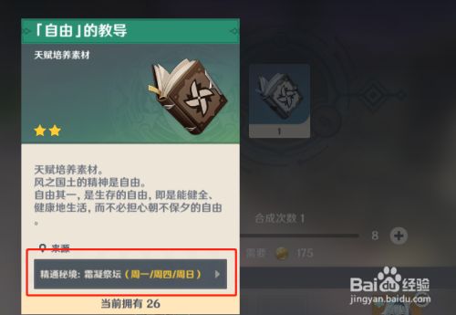 工具/原料thinkpad R14联想Windows10专业版原神2.3.0方式/步骤1打开原神客户端,登录进入游戏2收调集当作道具:自由的教诲3找到游戏内的合当作台,起头合当作4选择左侧的‘自由的指引’,点击合当作5合当作道具自由的指引,打开背包查看END注重事项筹办材料
