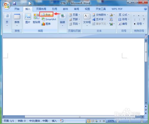 1、打开word,点击插入,选择外形东西;