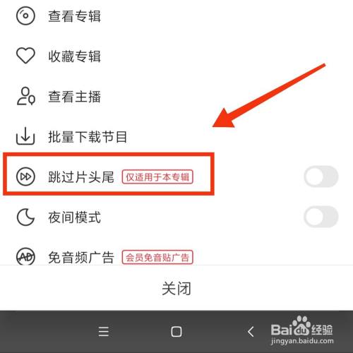 再点击滑动开启跳过片头从头至尾的滚轮。