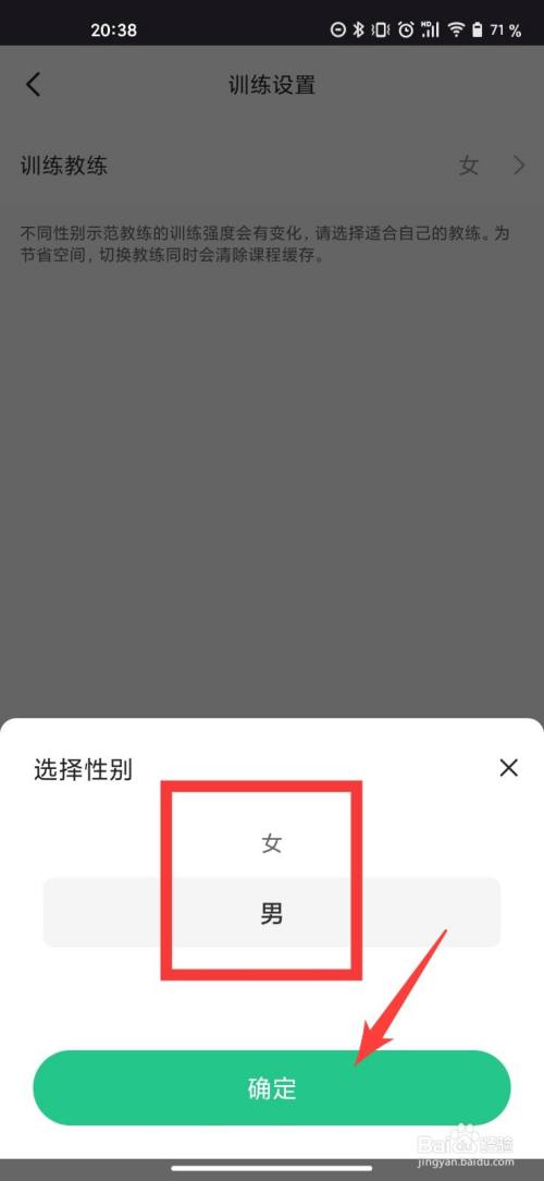 点击练习锻练之后,选择性别,点击确定。