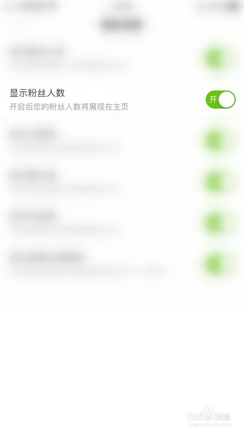隐私设置界面点击“显示粉丝人数”后面的圆点