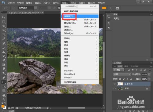 选择滤镜下的滤镜库;