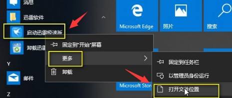 在桌面的开始菜单中找到迅雷,点击更多栏面前目今的打开文件位置按钮