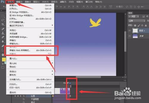 删除多余时候轴部门,点击文件菜单中的存储为Web所用格局按钮,并将动画轮回结果设置为永远即可