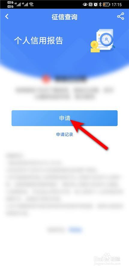 进入征信查询页面,点击申请。