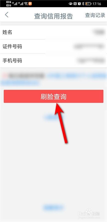 进入信用陈述查询页面,点击刷脸查询。