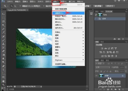 点击滤镜,选择滤镜库;