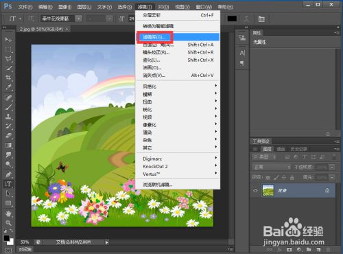 点击滤镜下的滤镜库;