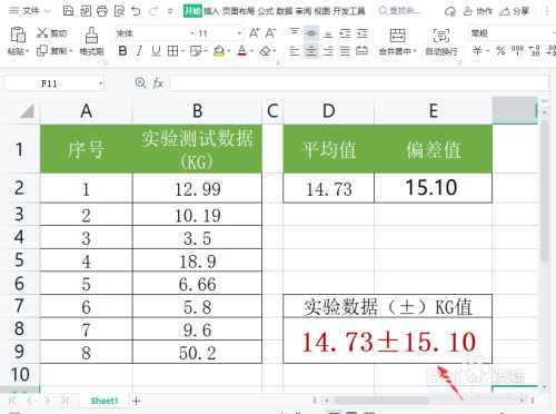 最后,我们把平均值和误差值的数据填写下来,就酿成了【14.73±15.10】。