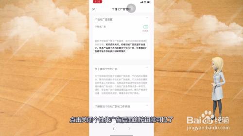 打开“个性化告白办理”界面后,点击封闭个性化告白后面的按钮就可以了。