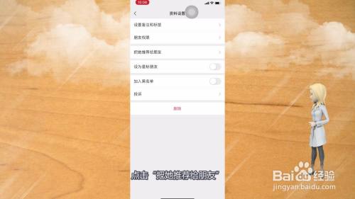 在老友资料设置中,点击“把她保举给伴侣”。