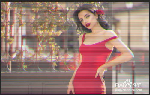 下面,我们在图层面板,将三个复制的图层别离在画布上上下移动,如下图,故障风已经初步呈现了。