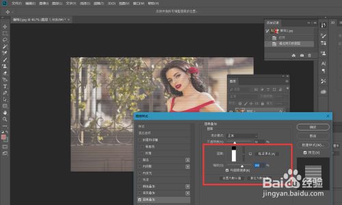 双击复制的图片图层,打开图层夹杂模式页面,找到【图案叠加】,如下图,选择程度线图案叠加结果。