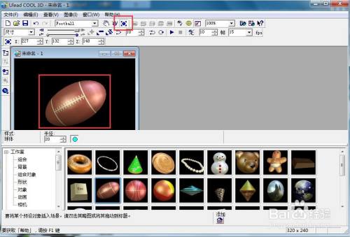 点击大小,标的目的外拖动鼠标,将橄榄球变大;