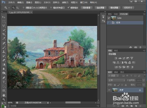 按ctrl+O,在打开窗口选中要处置的图片文件,然后按打开;