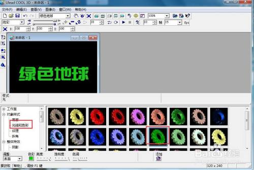 点击光线和色彩,选择绿色;
