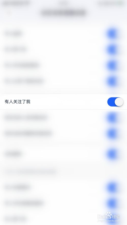 动态动静提醒设置界面点击”有人存眷了我“后面的圆点