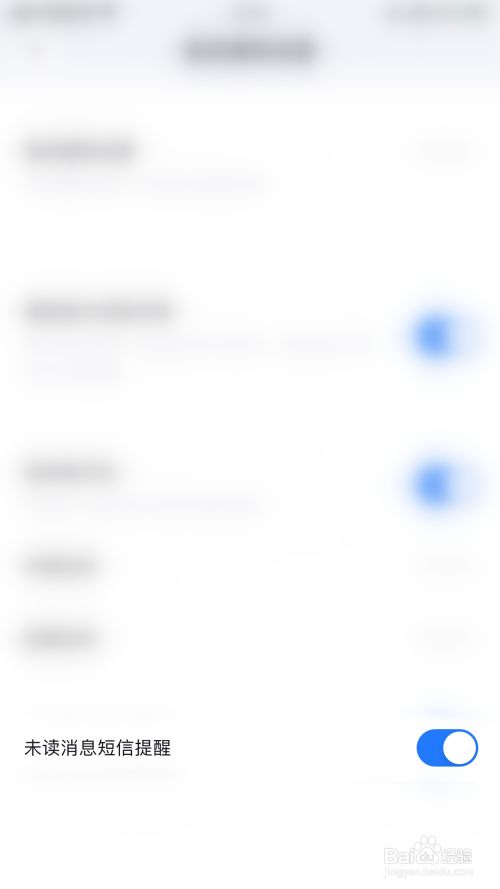 推送通知设置界面点击”未读动静短信提醒“后面的圆点