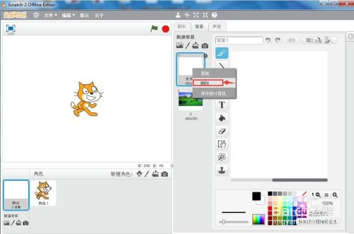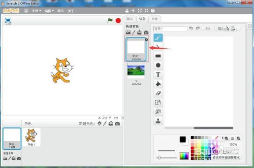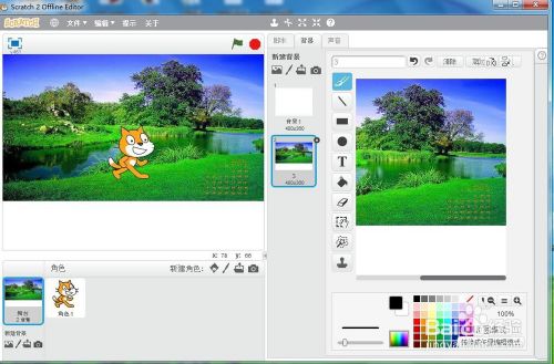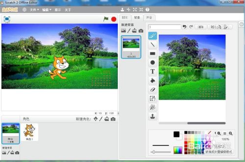 这样,我们就将当地文件夹中选中的这张图片添加当作为了scratch的布景。
