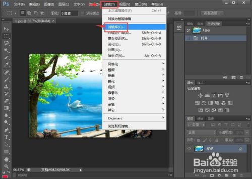 点击滤镜,选择滤镜菜单;