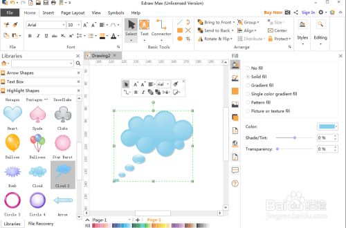 在单色填充中选择一种颜色,就可以给云形填充上新的颜色;