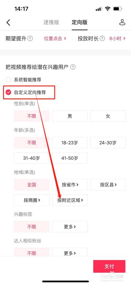 在这里可以看到本身已选择推广作品的同城区域,在左下方可以看到投放推广的金额,点击右侧【支付】完当作支付就可以在同城推广了。
