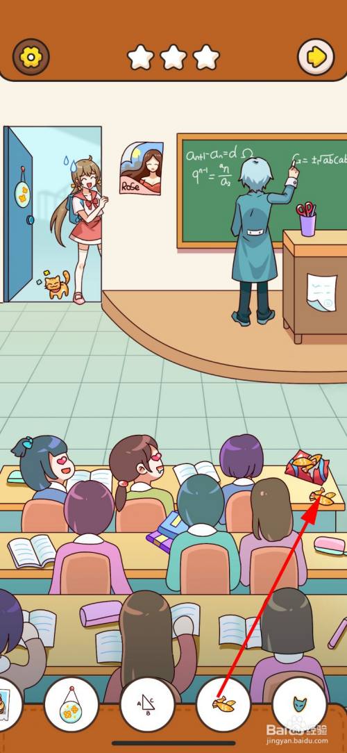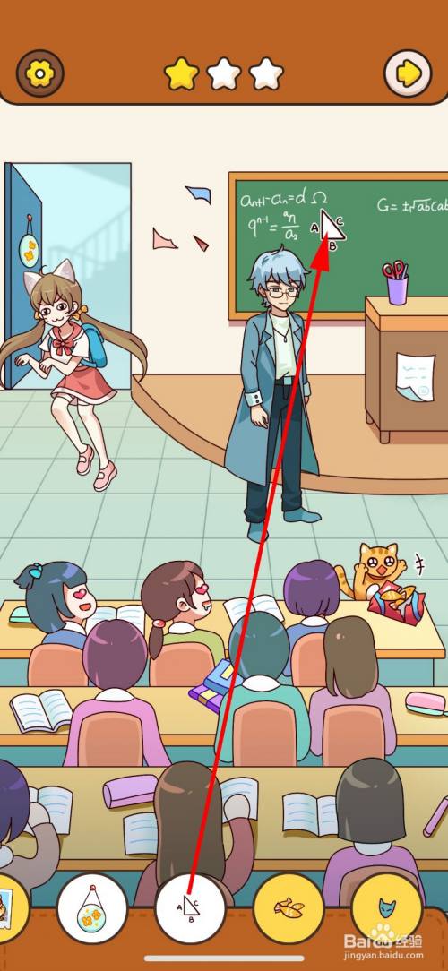 点击黑板上的三角形,即可获得第六件物品。