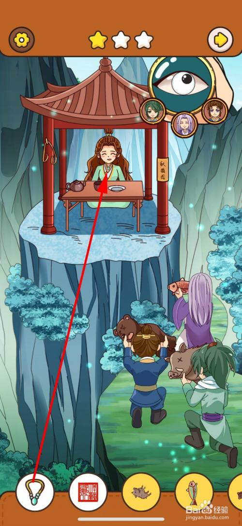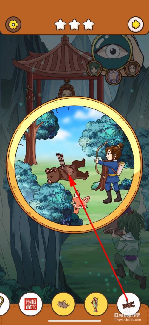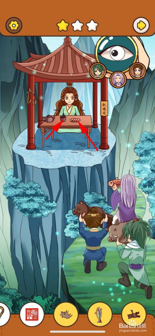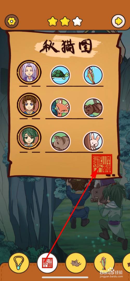 将对应的动物按照下图的挨次放好,点击右下角的印章即可获得第五件物品。