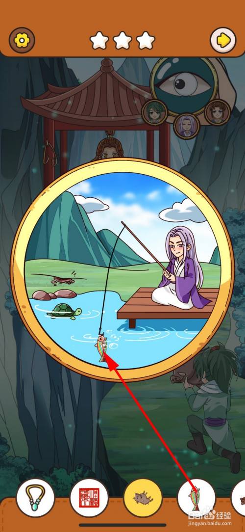 很快就有鱼咬钩了,点击鱼获得第二件物品。