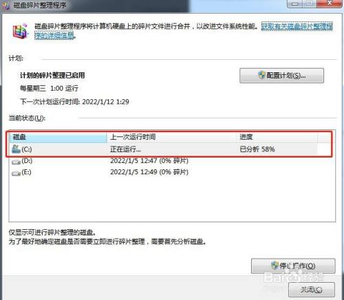 优化完毕后封闭对话框,磁盘碎片清理完当作。