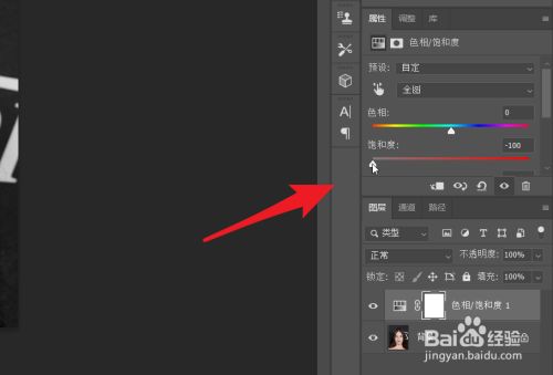将饱和度降低到最左侧就可以获得口角色的人物图片了。