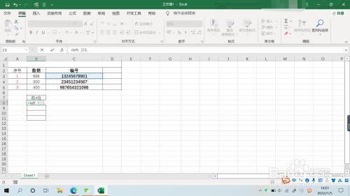 点击需要提取内容单位格,点击C3单位格,输入逗号