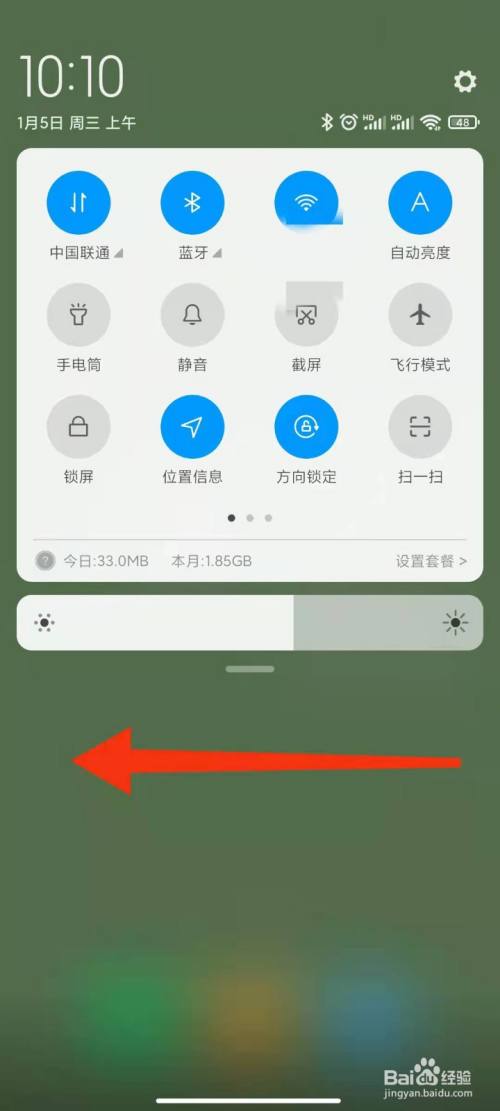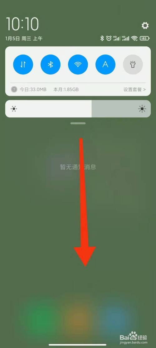 1、从手机顶端肆意处下滑一下