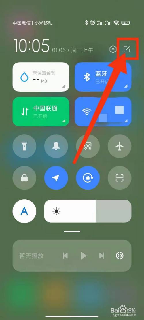 1、在手机屏幕的右边顶端下滑打开节制中间(新版本控制中间左边下滑是通知栏)