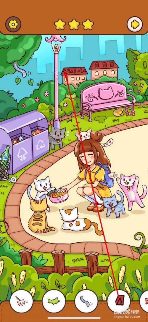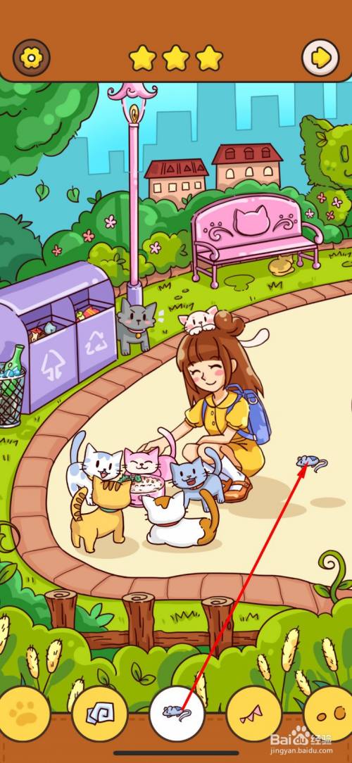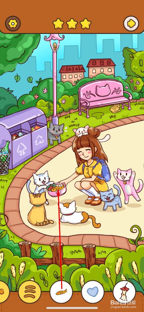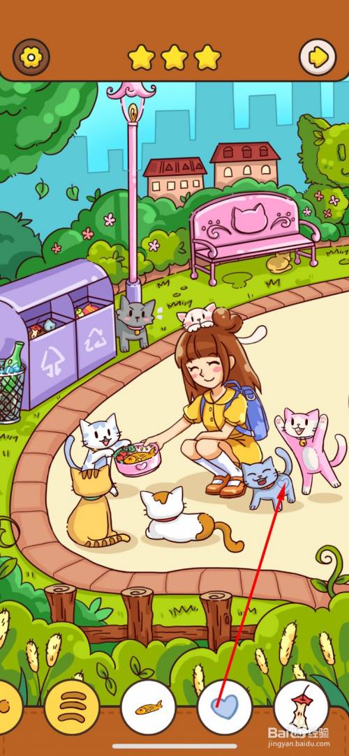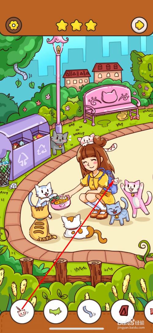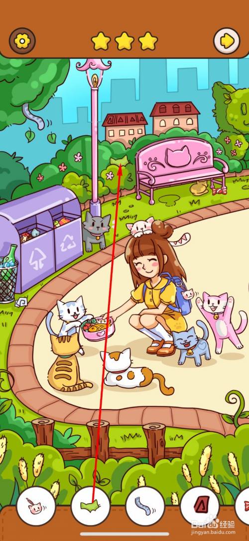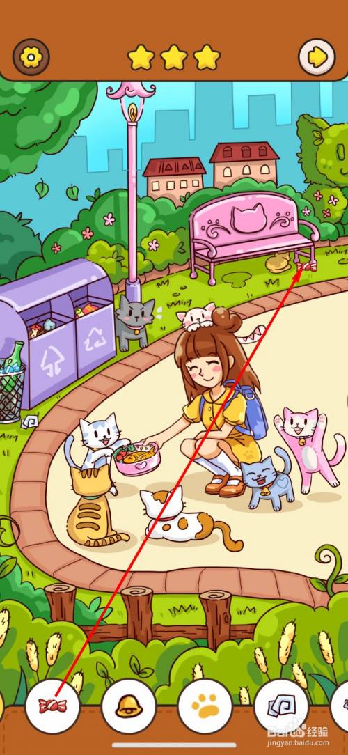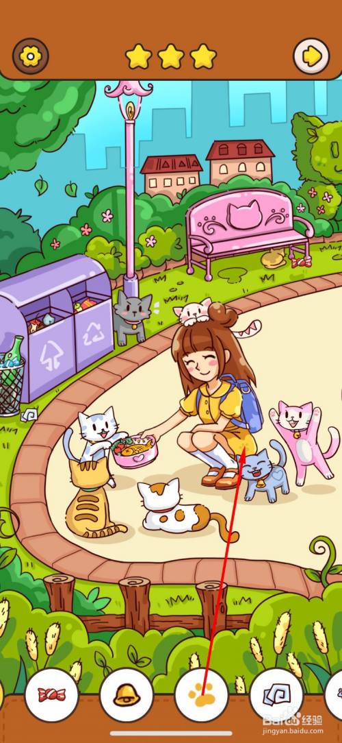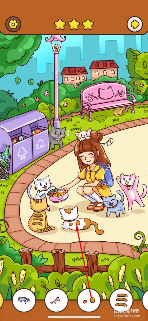 斑纹3在夏小诺前坐着的猫咪身上,点击获得第十一件物品。