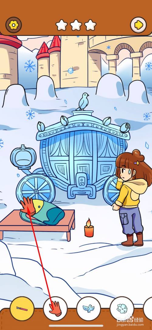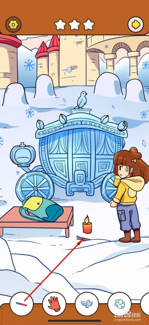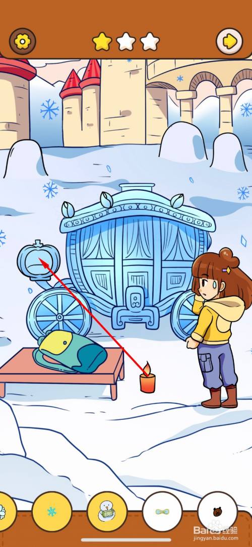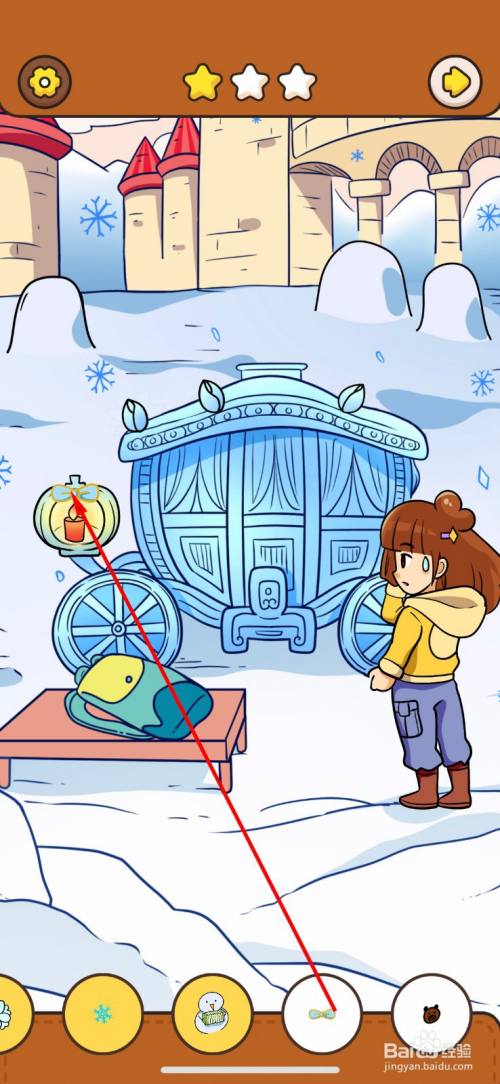 拖动地上的蜡烛到南瓜车冰雕,南瓜灯里。