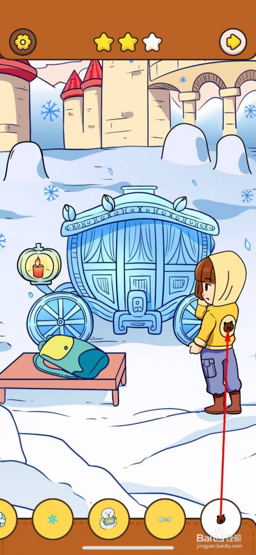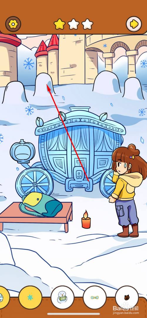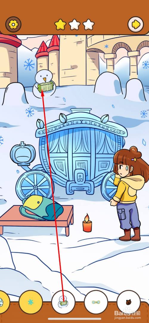 积雪失落掉队,露出里面的雪人,点击即可获得第六件物品。