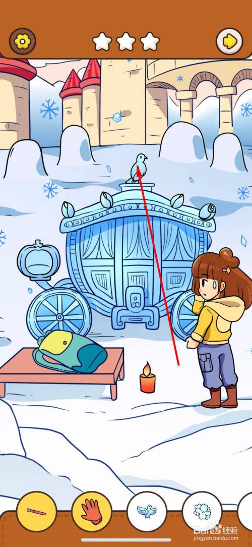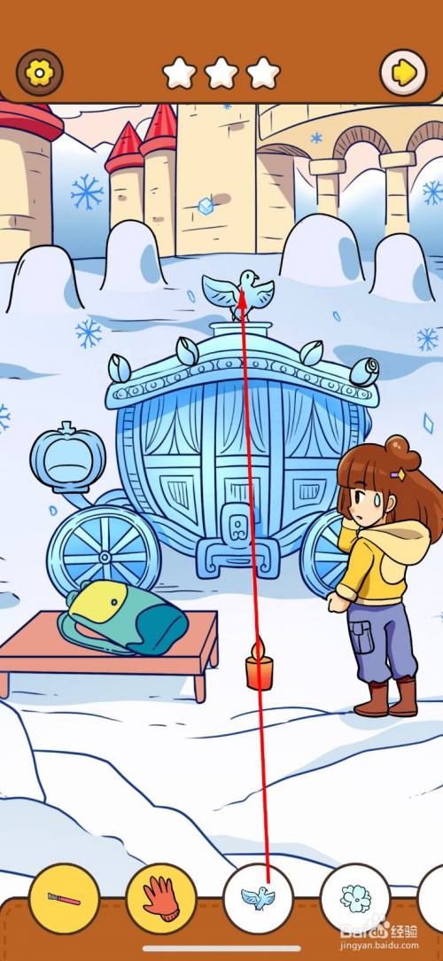 点击南瓜车冰雕顶上的鸽子。