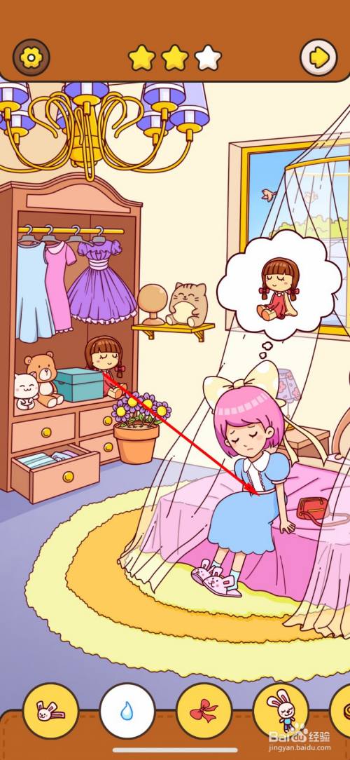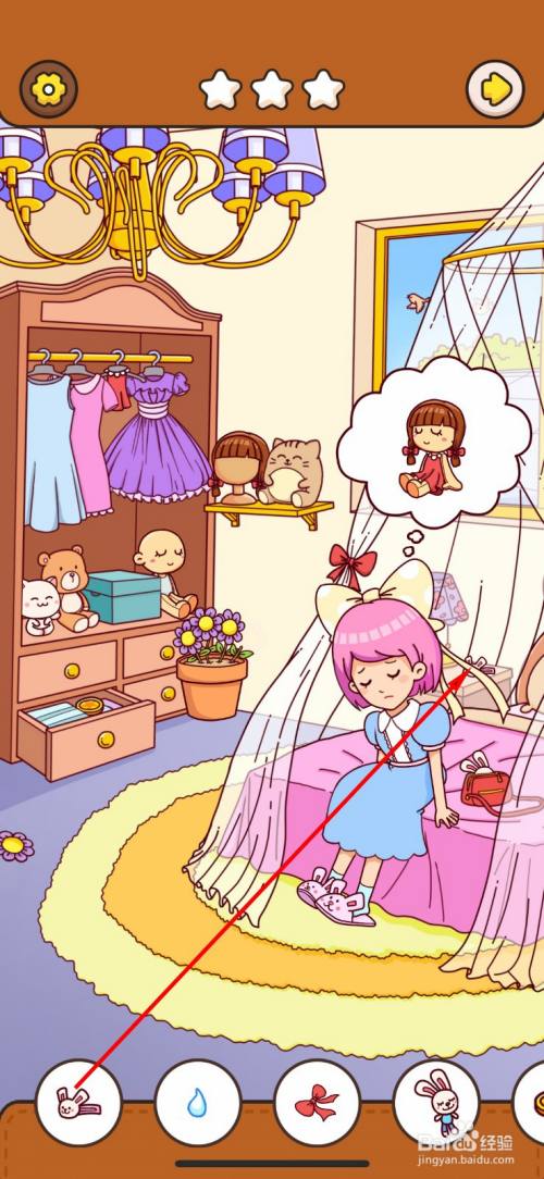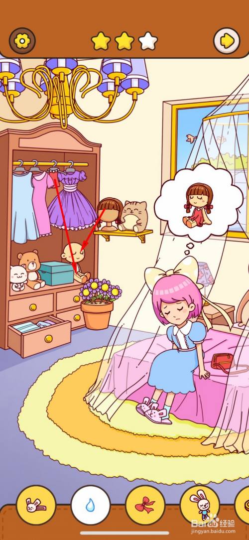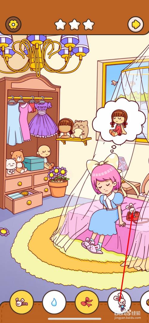 打开后点击小兔子玩偶,即可获得第三件物品。