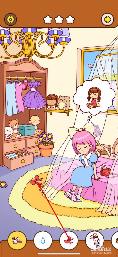 点击失落在地上的蝴蝶结,即可获得第二件物品。