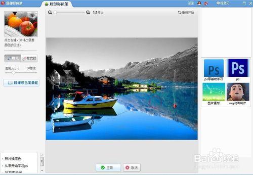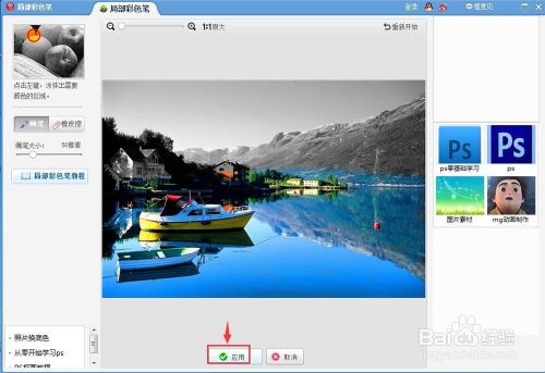 将需要酿成彩色的部门全数涂抹完后,点击应用;
