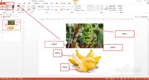 拍下一张喷鼻蕉图片上传到电脑——在PPT中点击插入——图片——选择喷鼻蕉图片插入。